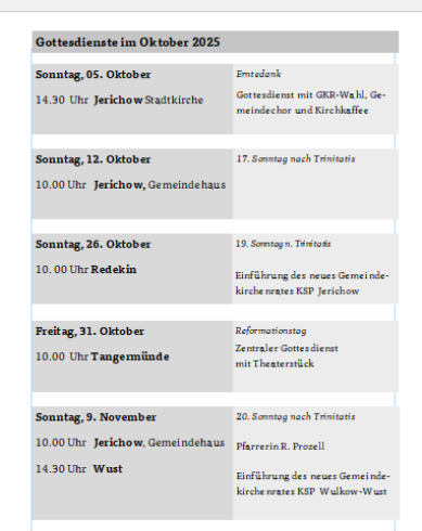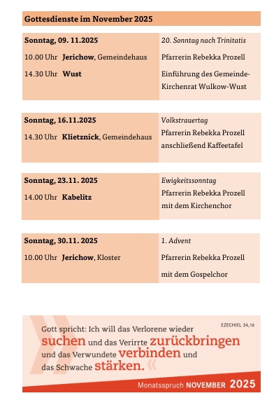 Evangelisches Pfarramt Jerichow Lindenstr.14 39319 Jerichow Tel: 039343/256 rebekka.prozell@ekmd.de